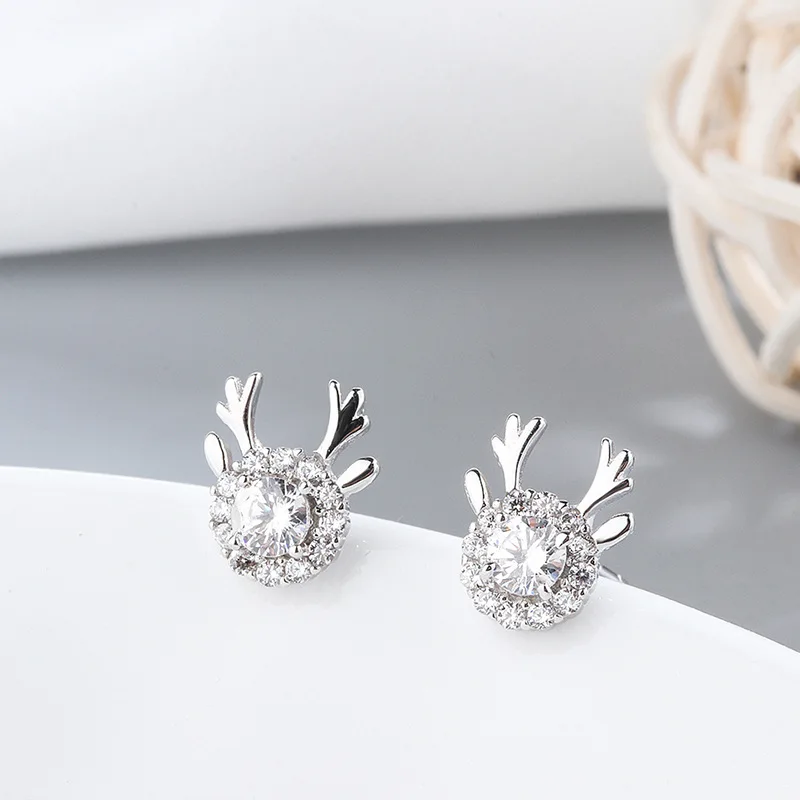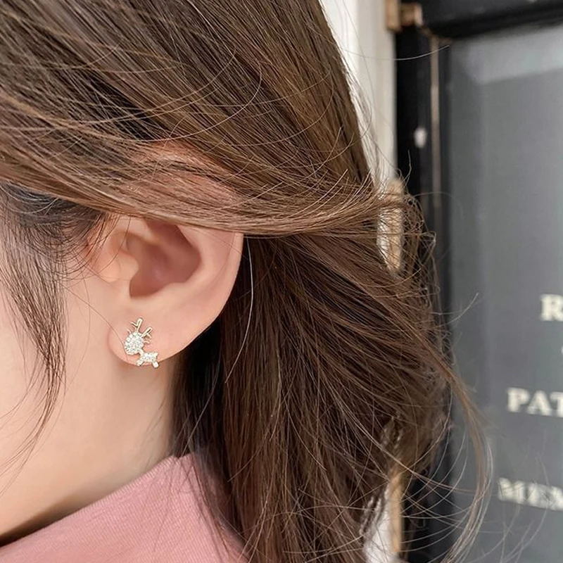 Корейские модные милые рождественские серьги-гвоздики с оленем для ...