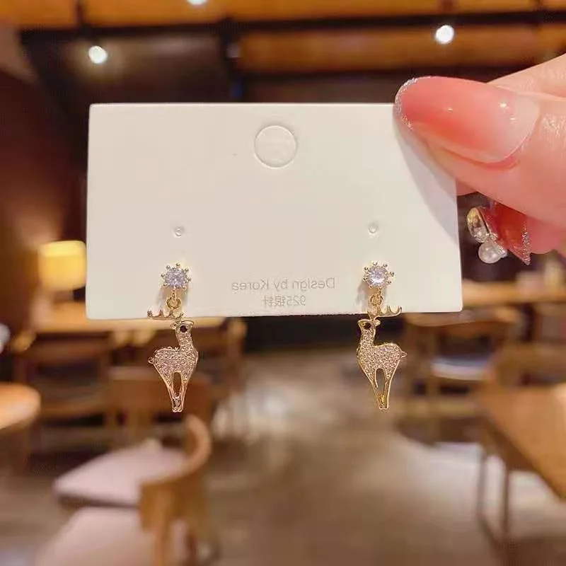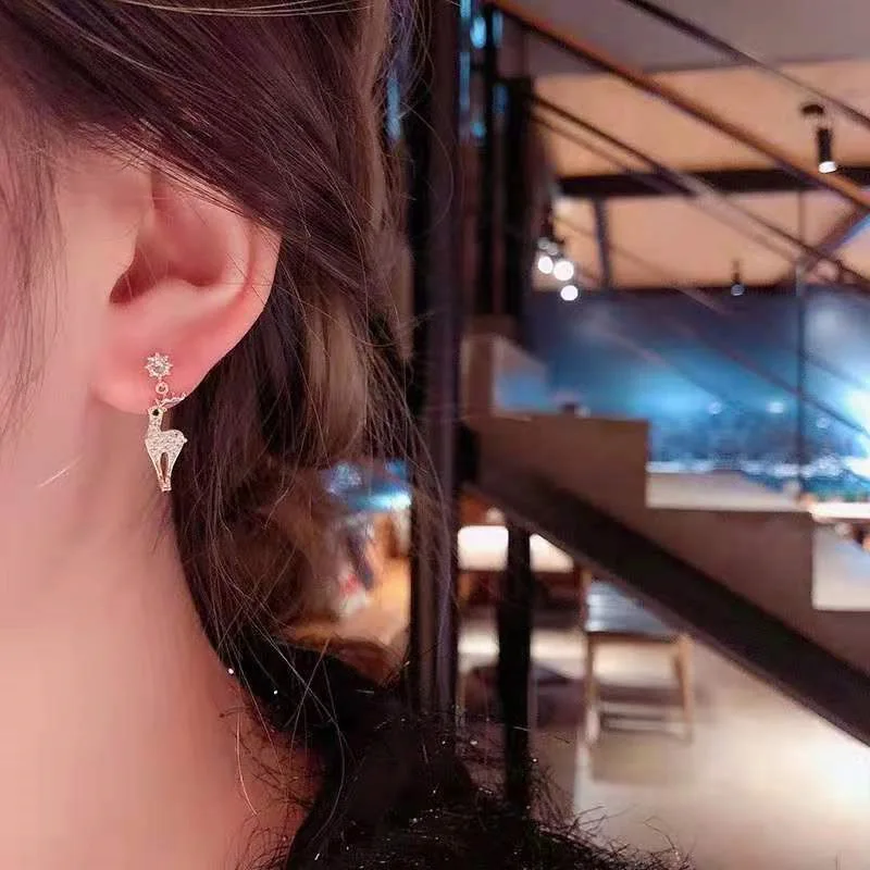 Модные рождественские серьги с кристаллами в виде лося, милые Эффек...