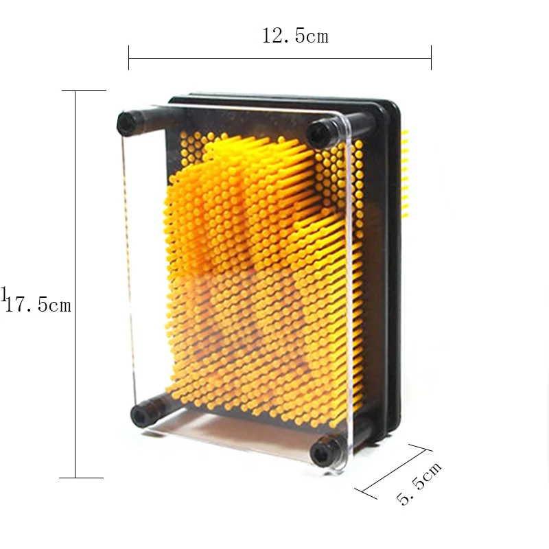 Просто нажав на предмет (или Причастие) в множество тупых штифтов, вы создадите 3d-скульптуру со всеми тонкостями контуров, точно запечатанными. Впечатление остается нетронутым до тех пор, пока устройство не нарушено. Завораживающий, художественный и веселый!