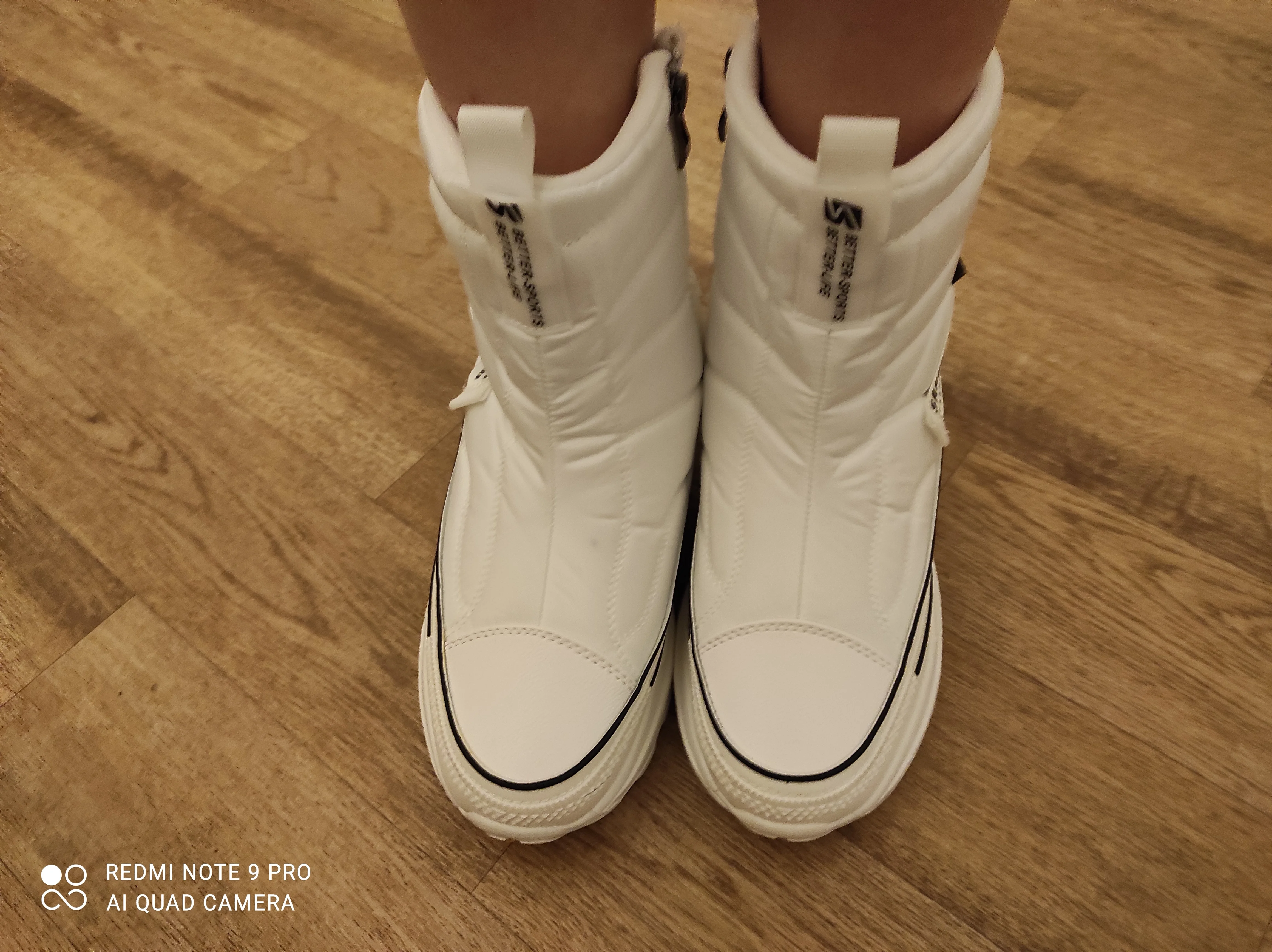 сапожки приличные. с размером угадала - брала 39 на мой 38. на ноге сидят хорошо. очень лёгкие и стильные. ещё не надевала, поэтому ничего не могу сказать по поводу скольжения во время ходьбы. буду надеяться, что ходить будет удобно и безопасно