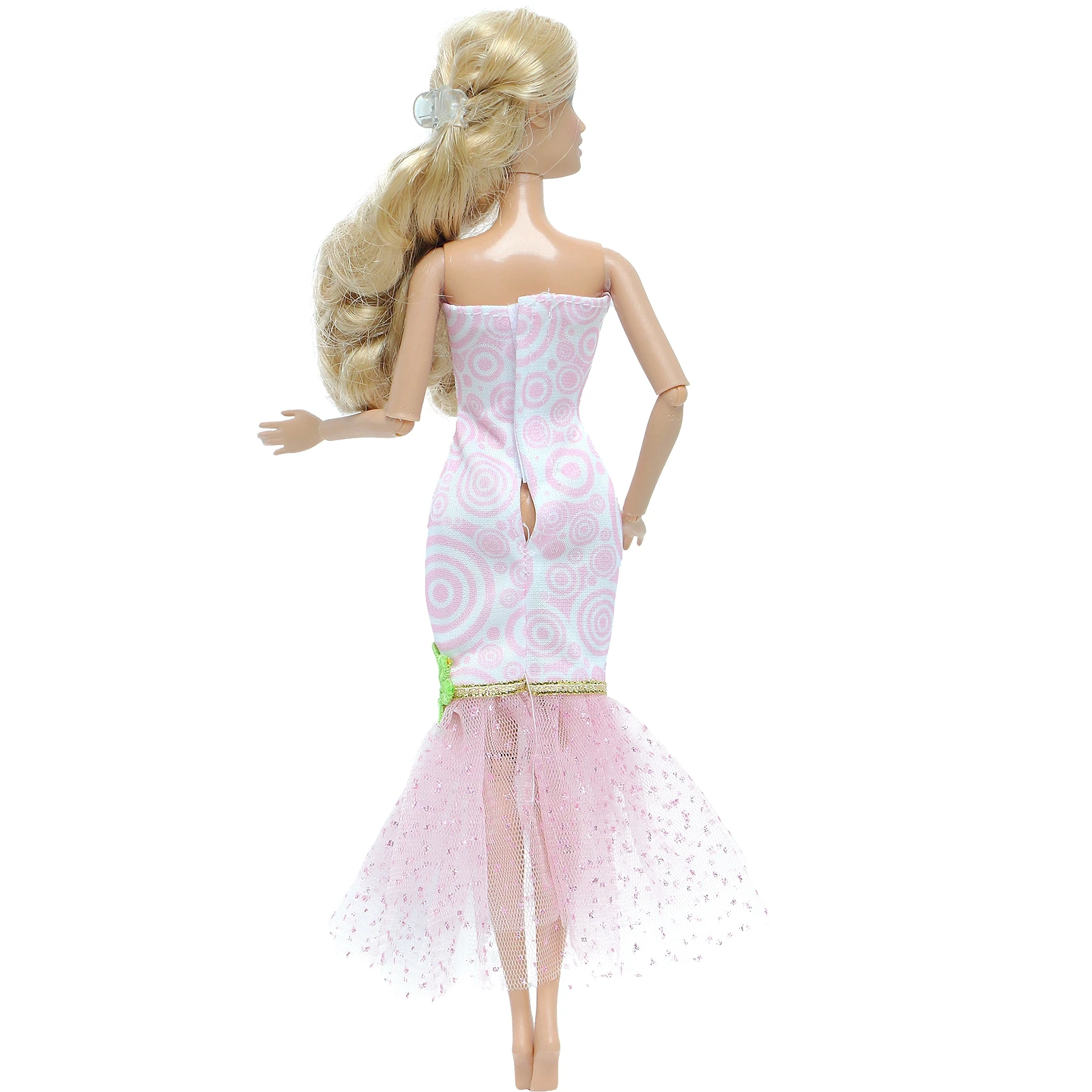 Элегантная розовая кружевная юбка рыбий хвост BJDBUS 1 с рисунком петли, бальное платье, тонкая вечерняя одежда без бретелек для Барби
