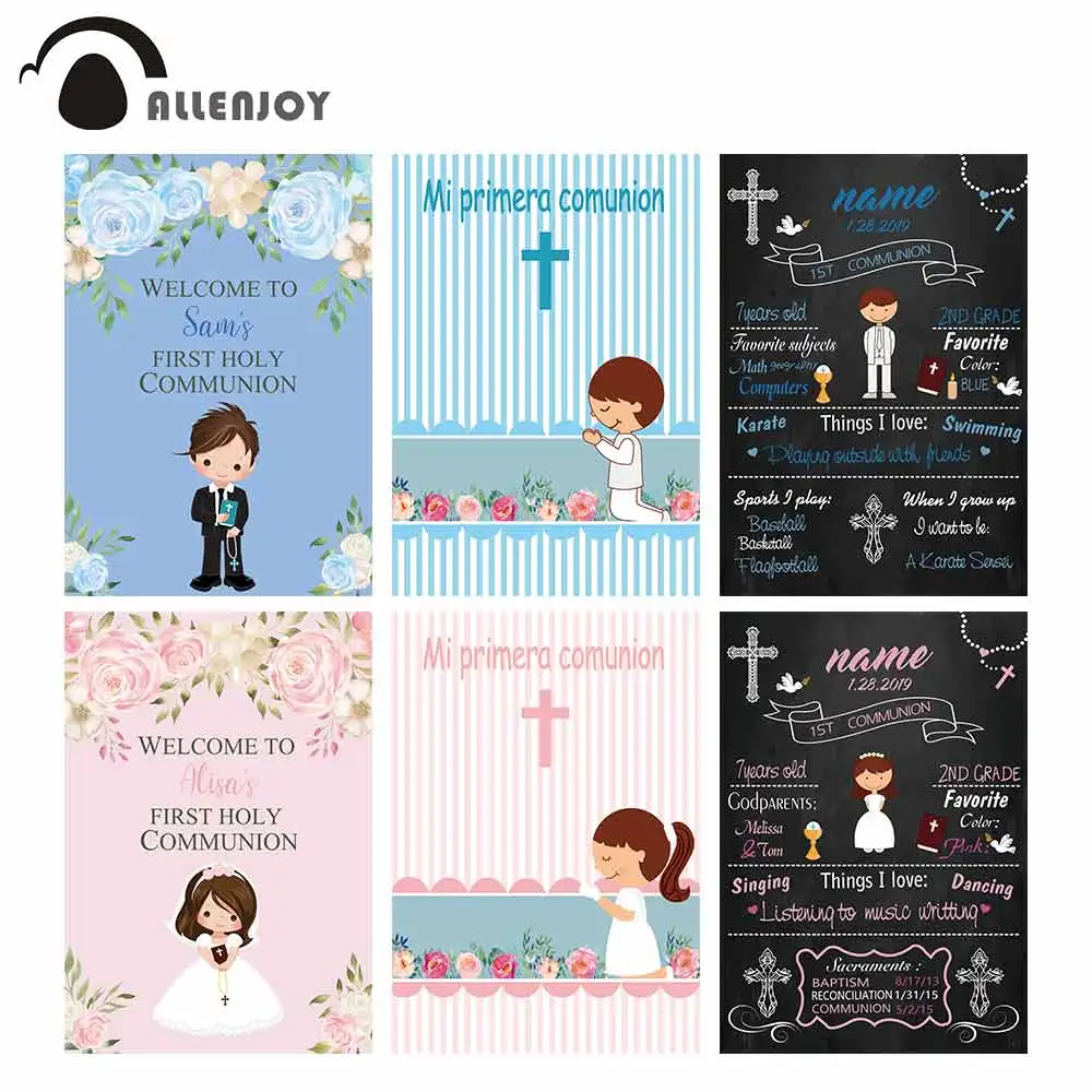 Allenjoy фон для первого причастия крест Mi Primera Comunion крещение дерево на заказ постер события Реквизит Поставки обои