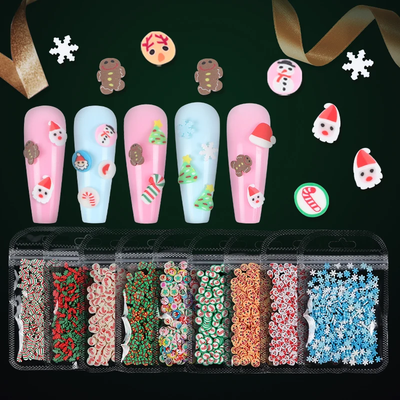 Санта-Клаус для дизайна ногтей хлопья Рождественская Кукла имбирь лося Полимерная глина дизайн блестки ювелирные изделия Маникюр амулеты поставка аксессуары для ногтей
