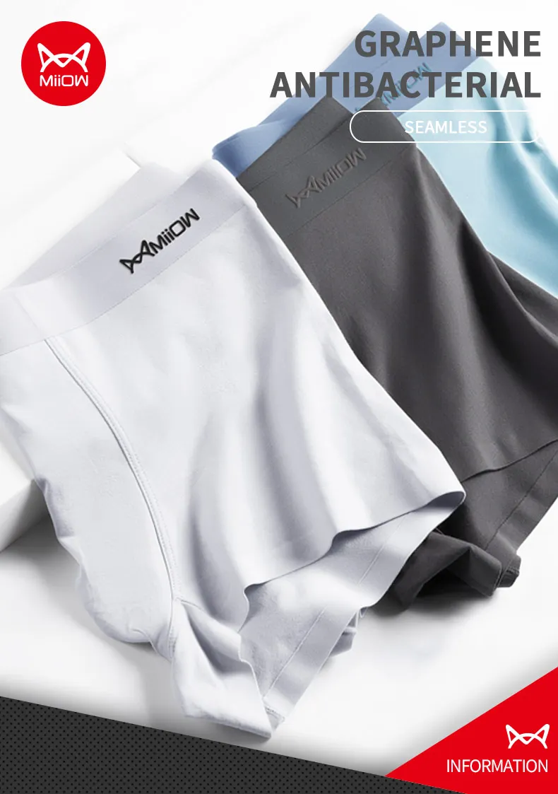 MiiOW, 3 шт., Бесшовное мужское нижнее белье-боксеры, ледяное шелко...