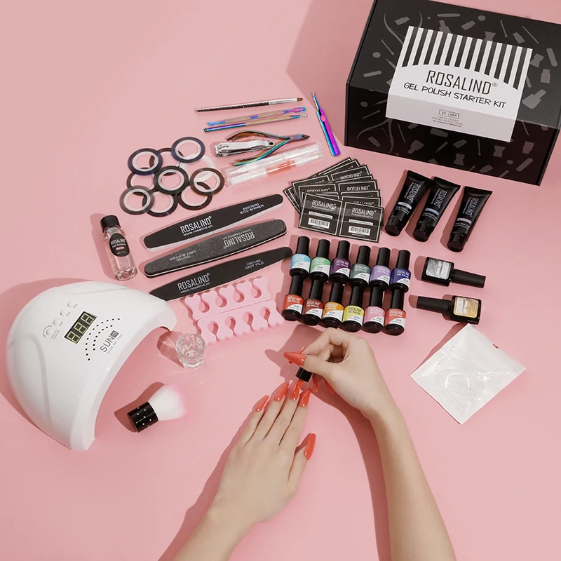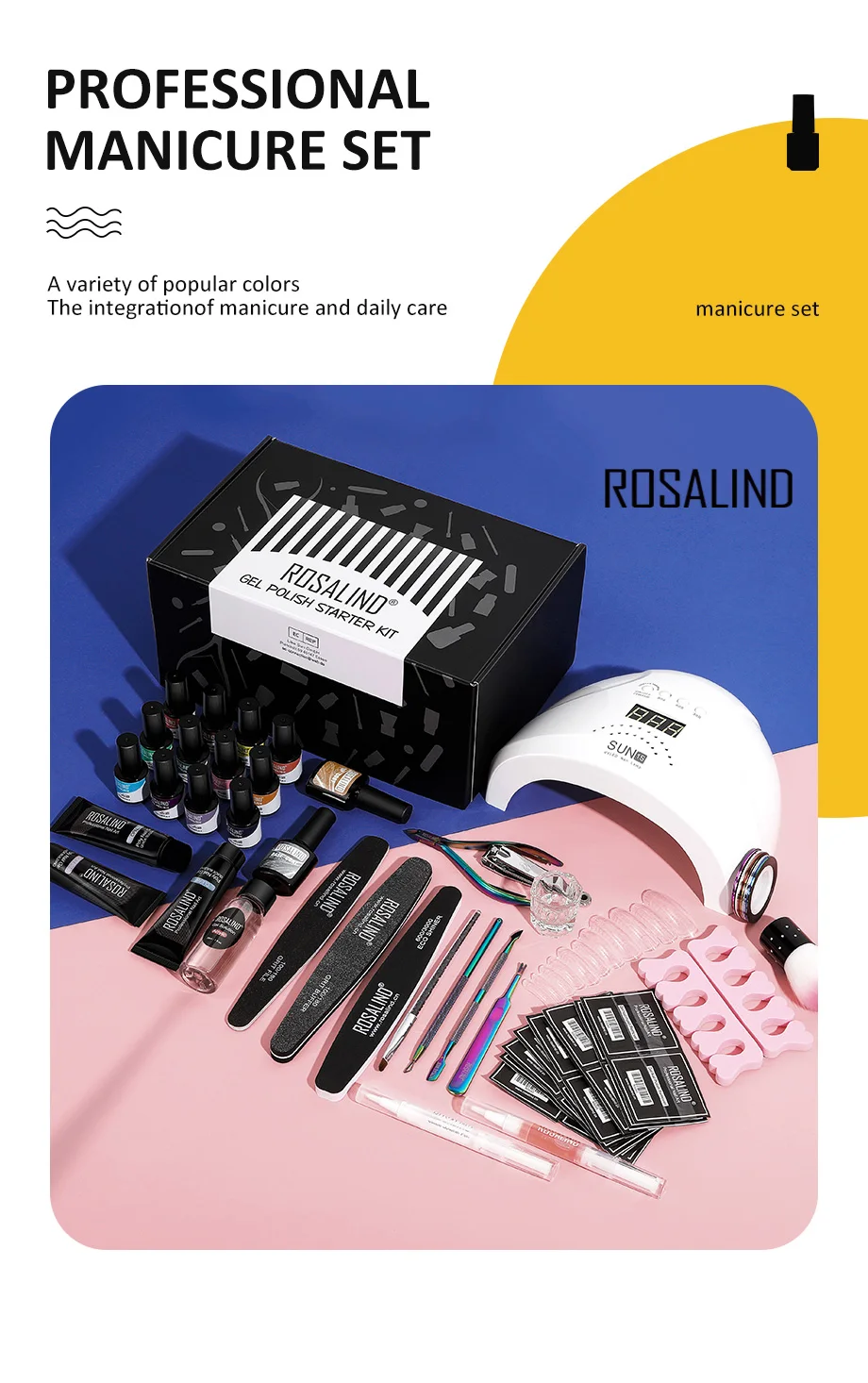 Профессиональные гель-Лаки ROSALIND набор гель-лаков для ногтей, набор инструментов для маникюра светодиодный Ной лампой, полигель для ногтей, базовое и верхнее покрытие, дизайн ногтей