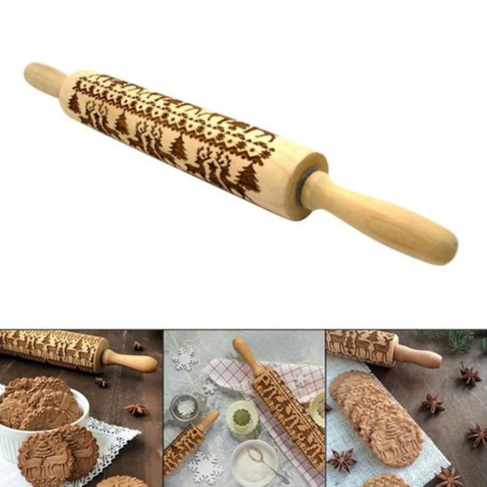 Распродажа 41 см Рождественская деревянная Скалка тиснение печенья печенье, фондан, пирог тесто узорчатый валик для выпечки