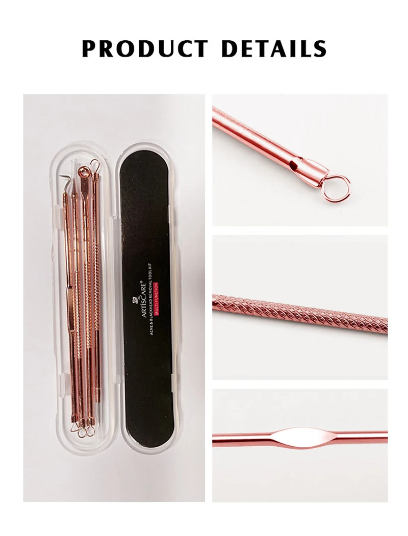 4 шт., экстрактор угрей, розовое золото, черные точки, очиститель, Удаление прыщей, иглы, набор для ухода за кожей черный, пятна, очиститель пор
