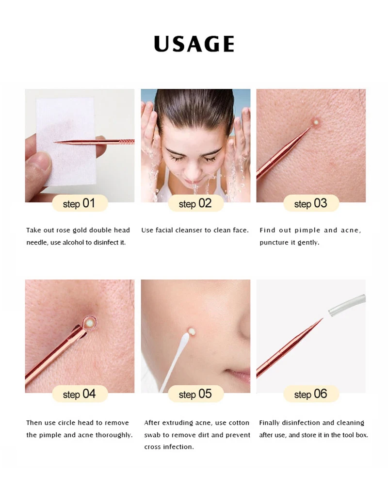 Эти инструменты предназначены для удаления прыщей, черных точек, пор для лица, прыщей и других.