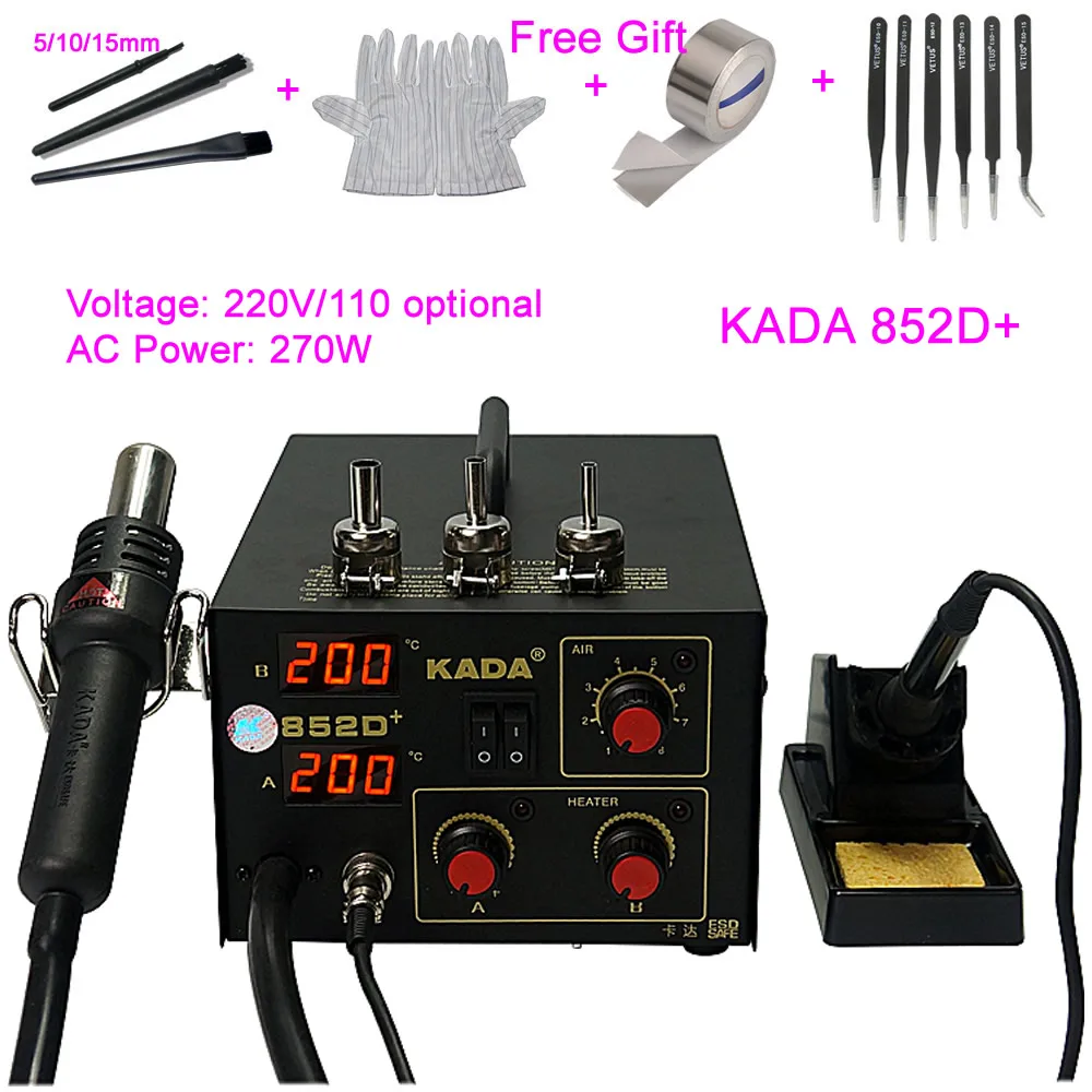 Паяльная станция KADA 852D +, 110 В, 220 В, 2 в 1