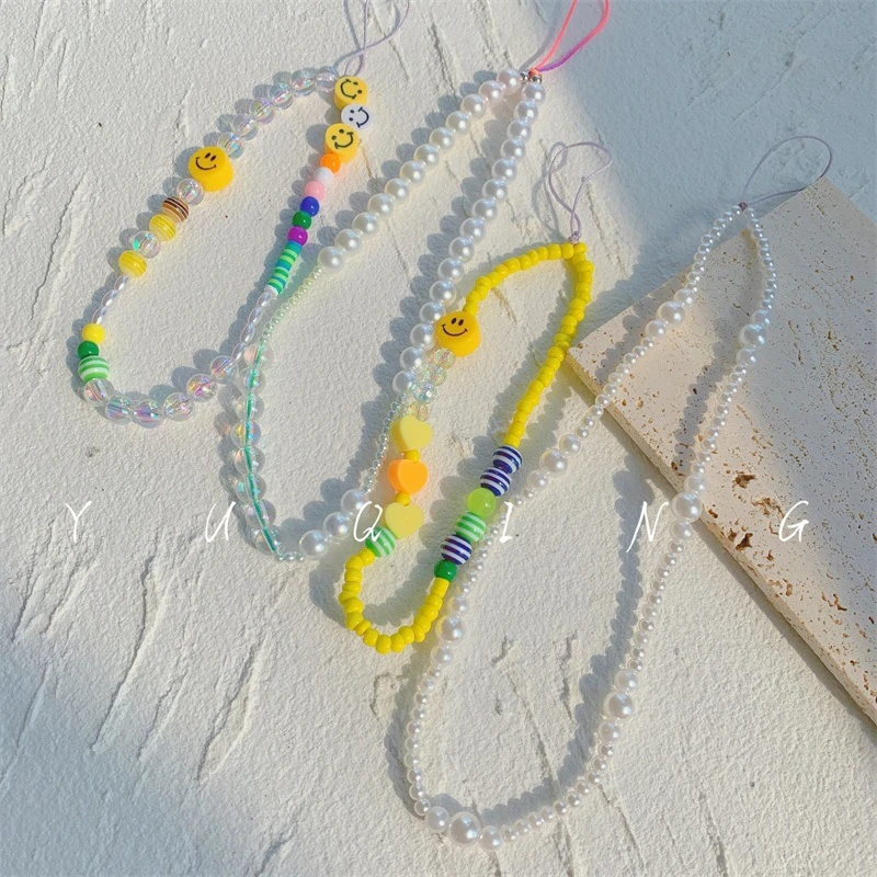 Богемная мягкая керамика со смайликом искусственный жемчуг бусины искусственный чехол с подвесной цепочкой с защитой от потери персонализированные женские ювелирные изделия