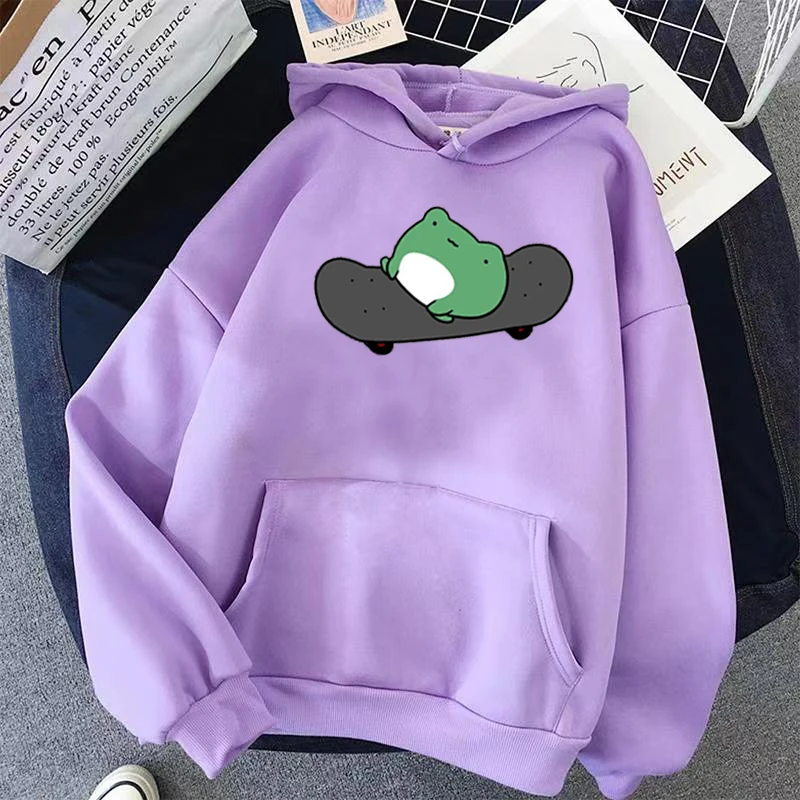 Толстовка в стиле оверсайз для мужчин и женщин, свитшот с принтом скейтборда, лягушки, теплый пуловер в стиле Харадзюку, корейские милые детские топы, на весну