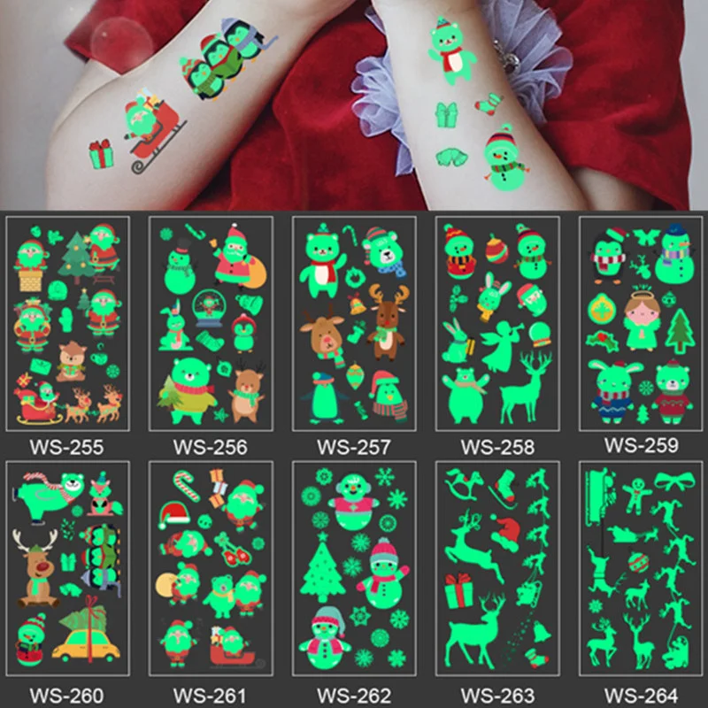 Светящиеся наклейки с татуировками, рождественские водонепроницаемы...