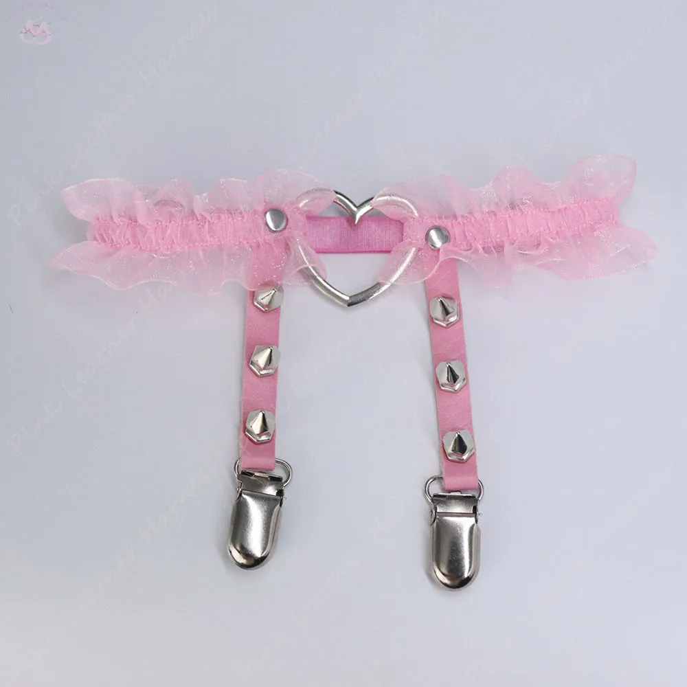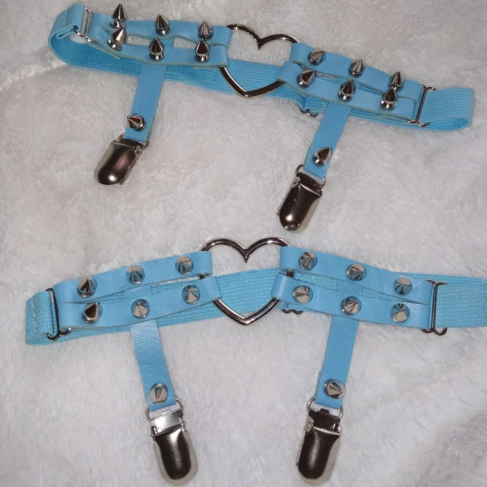 Подвязки с заклепками в стиле панк, 2 шт., розовые подвязки из искусственной кожи, ремни и чулки в готическом стиле, женские ремни, ювелирные изделия