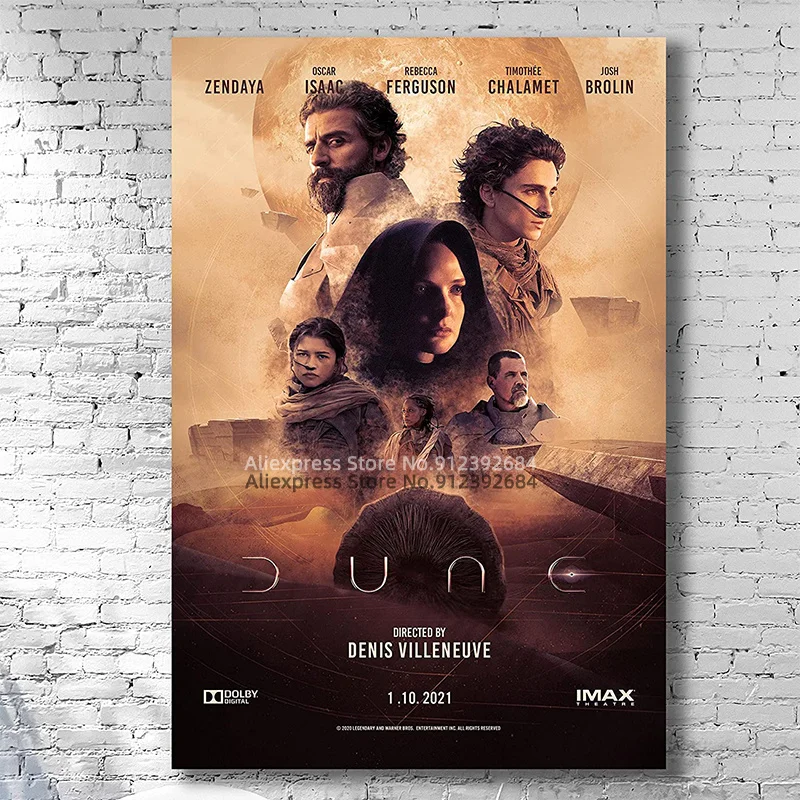 Постер Фильма 2021 на тему дюны-Денис виллеув Тимоти чаламет Ребекка Фергюсон Зендая Стеллан скаргард декоративный холст с принтом