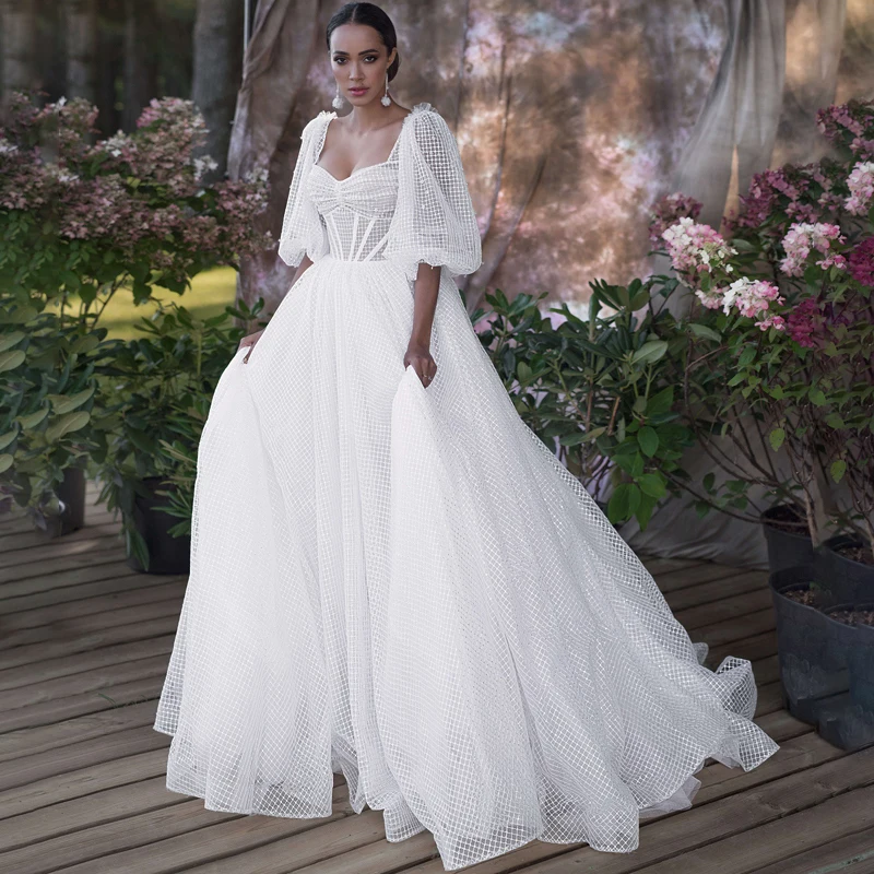 Женское ТРАПЕЦИЕВИДНОЕ ПЛАТЬЕ It's yiiya, Белое Прозрачное платье в сеточку на пуговицах с пышными рукавами на лето 2022