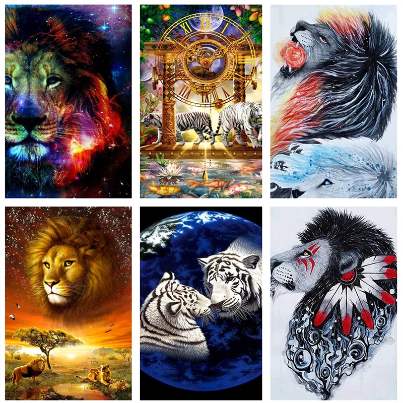 5D алмазная картина льва Тигровая животная мозаика Алмазная вышивка Стразы Сделай Сам круглая дрель ремесло Домашний Декор художественная картина