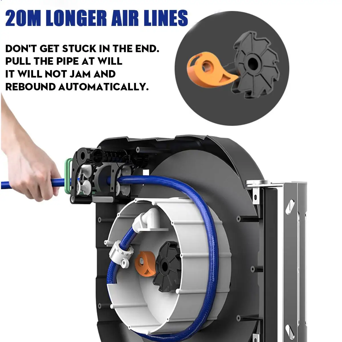Особенности: -- Большое пространство: барабан имеет большое внутреннее пространство для размещения достаточно длинных линий.-- Автоматические катушки: Используйте высококачественные пружины, более жесткие, более прочные. Поддержка автоматического позиционирования и восстановления.-Дополнительная длина трубы: 10 м/15 м/20 м сверхдлинная труба может быть выбрана для удовлетворения ваших потребностей.-- 180 свободный дизайн вращения: более толстые настенные крепления гибко крепятся к различным стенам или потолкам, которые подходят для различных применений.-- Труба ПУ: рабочее давление до 20 кг, Высокопрочное полиэфирное волокно, высокая стабильность и долговечность.