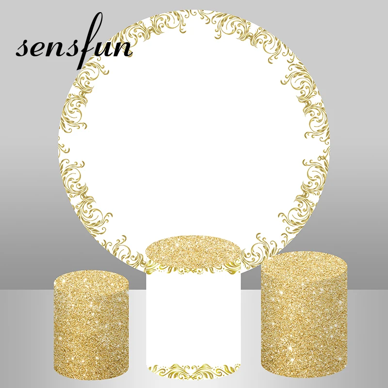 Sensfun белый золотой блестящий рисунок круглый чехол для фона Дети крещение день рождения Свадебная вечеринка фон для фотосъемки чехлы