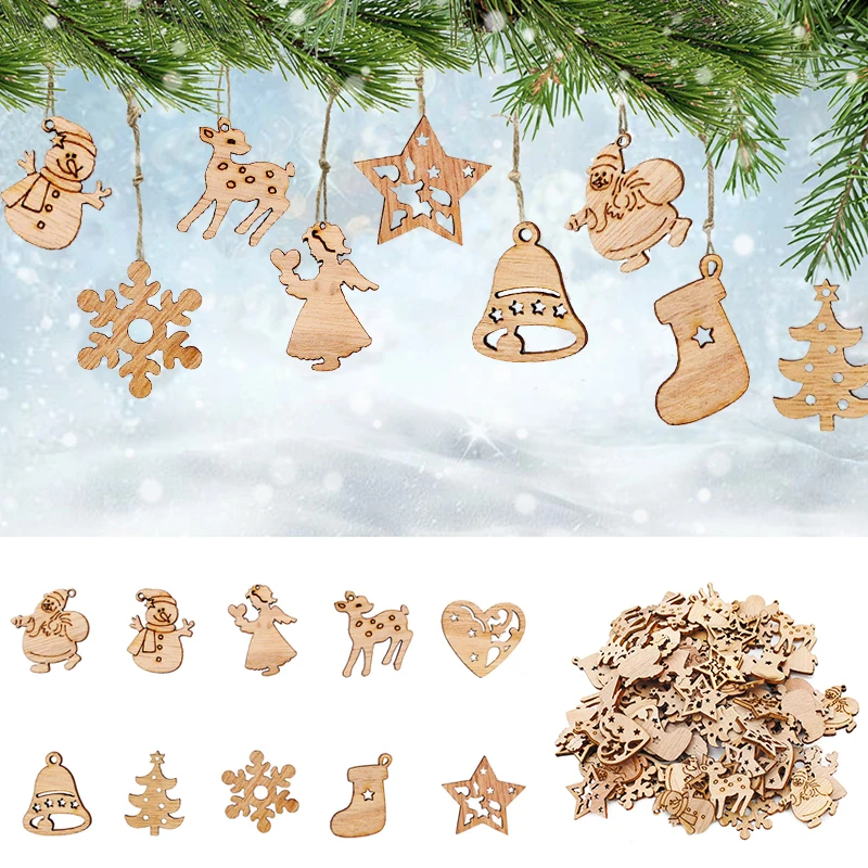 50 шт.лот натуральное дерево ремесло Рождественский подвесной орнам...