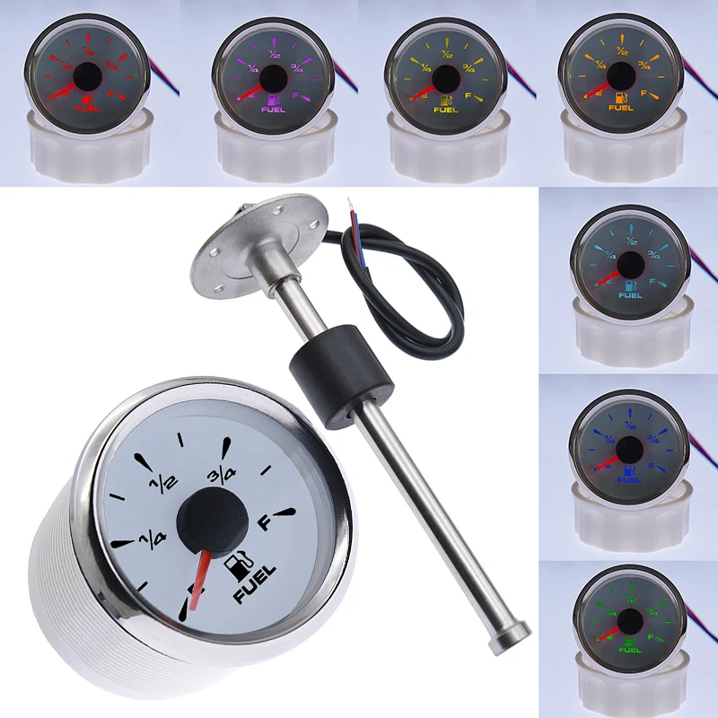 Водонепроницаемый датчик уровня воды 52 мм + датчик отправителя топлива 0 ~ 190 Ом Индикатор уровня бака для жидкой воды измеритель уровня 7 цветов подсветки