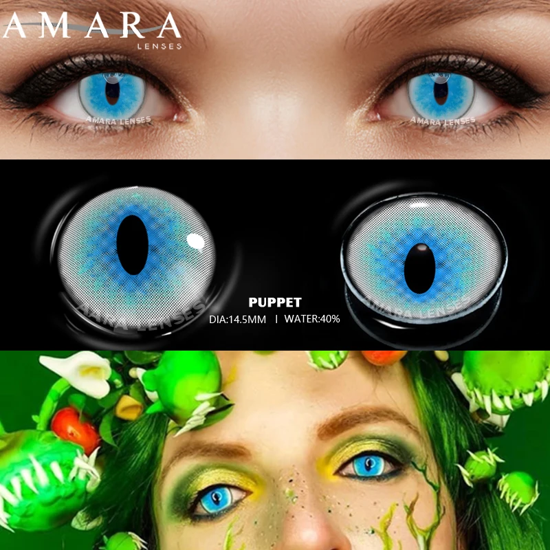 AMARA 2 шт., Хэллоуин, искусственные аниме, косплей, линзы для глаз, красные, черные, красные линзы, контактные линзы, косметика для глаз