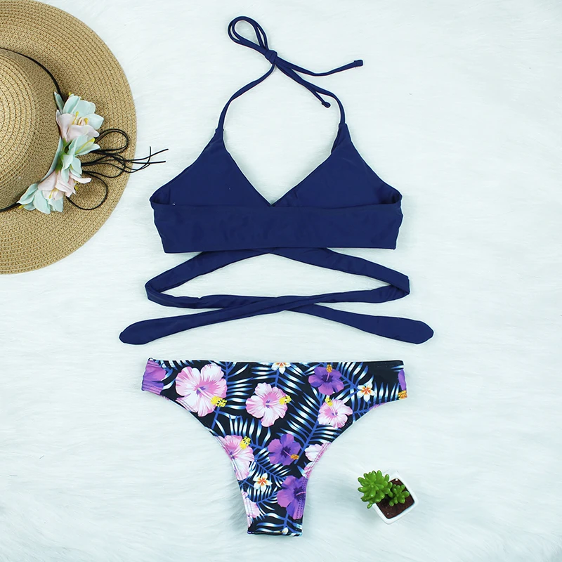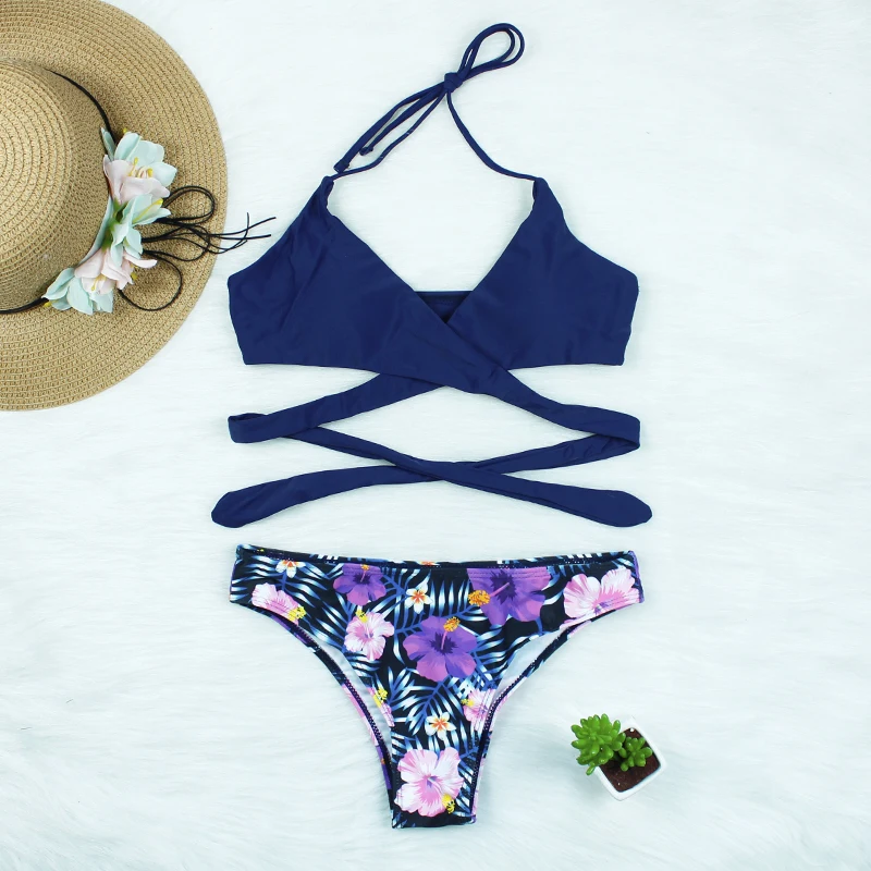 Соблазнительный комплект бикини, новинка 2022, купальник, женский купальник с цветочным принтом и перекрестным топом, бикини, купальный костюм, пляжная одежда, купальник из двух предметов, лето