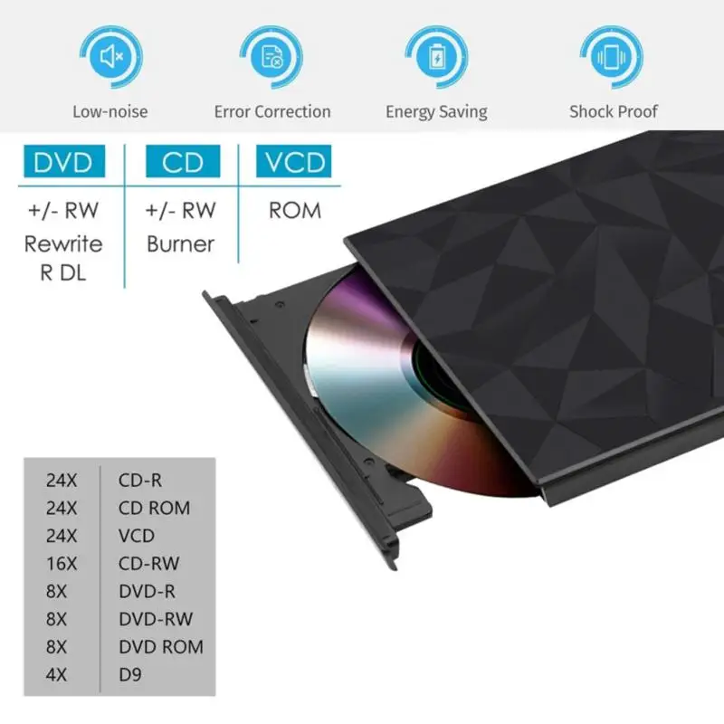 USB 3,0 + TYPEC тонкий внешний DVD RW CD записывающий привод, ридер, проигрыватель, оптические приводы для ноутбука, ПК, Dvd, горелки, интерфейс SATA