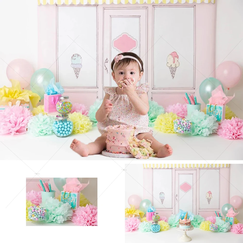 Фон для фотосъемки детей на день рождения торта конфет мультяшное мороженое для девочек