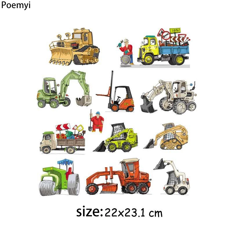 Лидер продаж, Инженерная техника, детская одежда, Мультяшные экскаваторы, термонаклейки на куртки, сумку, термонаклейки на заказ