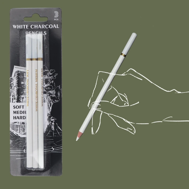 3 шт.упак. профессиональные белые карандаши с древесным углем, набор белых карандашей для выделения эскизов для рисования, растушевки затенения