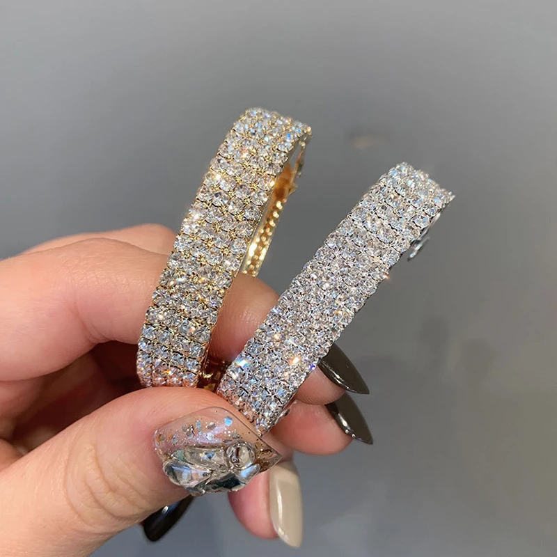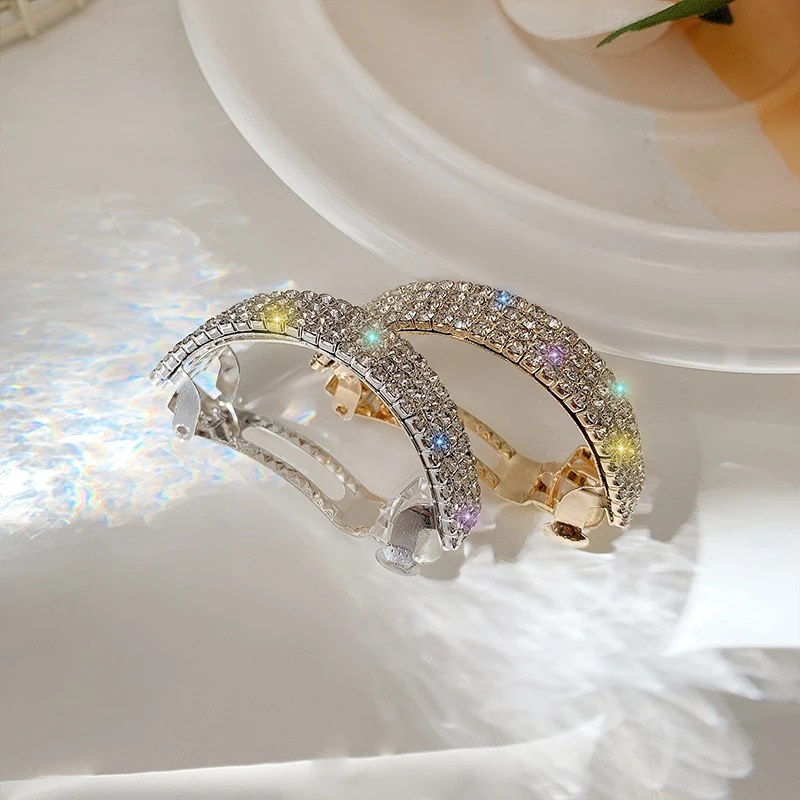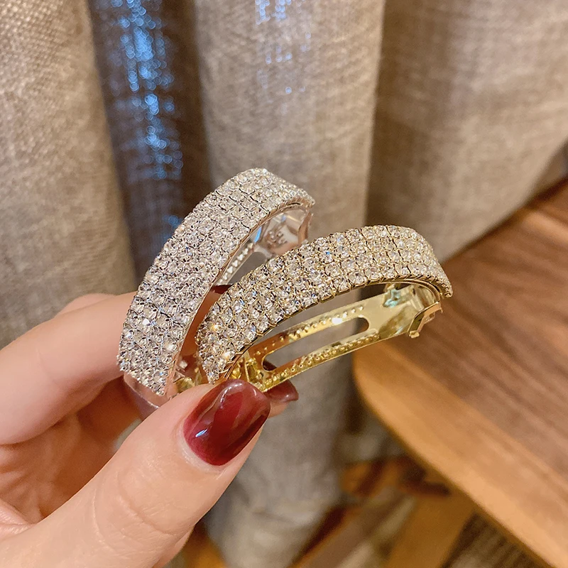 Модные заколки из золотого и серебряного сплава, Блестящие кристаллы, прочная пружинная заколка для волос, аксессуары для волос