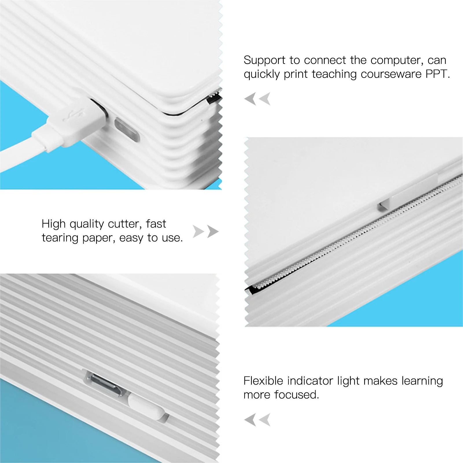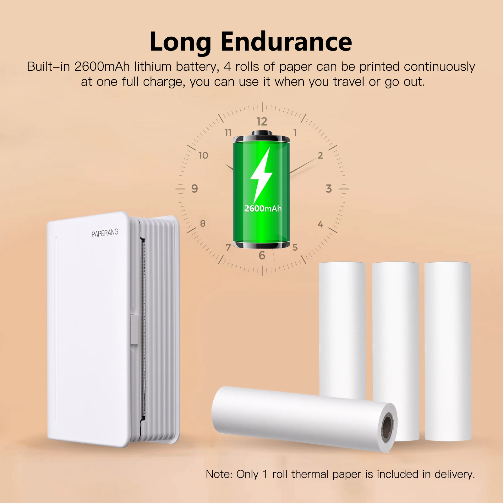 Особенности:Портативный принтер:Компактный и простой дизайн для моделирования книг, быстро интегрируется в атмосферу обучения. Ширина бумаги 112 мм, разрешение 300 точек/дюйм, гладкая и чистая печать, удовлетворяет ваши различные потребности в печати.Беспроводное подключение:Поддержка беспроводного подключения BT с помощью приложения для смартфонов, совместимого с Android и iOS, вы можете печатать в любое время и в любом месте. Также поддерживается подключение USB, Совместимо с Windows и Mac.Принт без рисунка:Передовые технологии термопечати, без чернильного картриджа, удобные и Экономичные. Импортная печатающая головка, стабильная производительность, хороший эффект печати и имеет длительный срок службы.Длительная выносливость:Встроенный литиевый аккумулятор 2600 мАч, 4 рулона бумаги могут быть напечатаны непрерывно при одной полной зарядке, вы можете использовать его во время путешествия или выхода.Печать все, что вам нравится:Портативный беспроводной принтер, поддержка печати фотографий, изображений, чеков, заметок, заметок, этикеток, наклеек и т. д. Распознавание текста OCR, быстрое преобразование изображения в редактируемый текст.Характеристики:Цвет: белыйМатериал: АБС-пластикМетод печати: термопечатьПодключение: BT 4,0 + USBРазрешение: 300 точек/дюймПотребляемая Модель: 111 ± 1*30 ммВходное напряжение: 5 В постоянного тока, 2 ААккумулятор: встроенный 7,4 В, 2600 мАч литиевая батареяПоддерживаемые системы: Android, iOS, Windows и MacРазмер изделия: 15*10*4,5 см/5,9*3,9*1,8 дюймовВес изделия: 480 г/16,9 унцийПосылка Размеры: 18*12,4*6,5 см/7,1*4,9 * 2.6inВес посылка: 682 г/24,1 унцийУпаковочный лист:1 * термопринтер1 * Тепловая бумага1 * USB кабель1 * Руководство по быстрому запуску (упрощенный китайский/английский/японский/Корейский/тайский)
