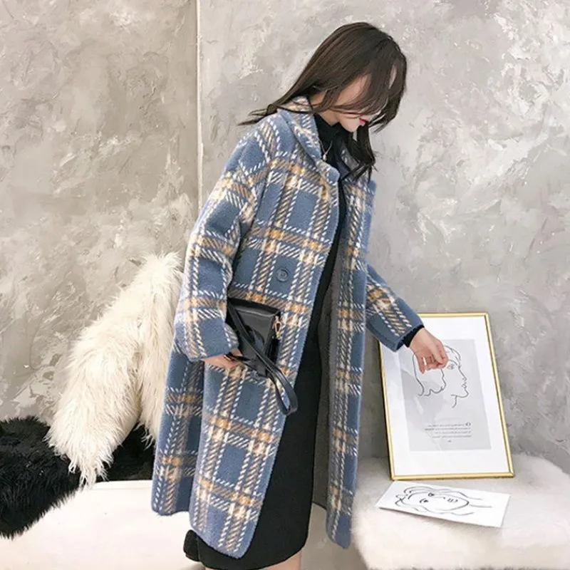 Женское шерстяное пальто в клетку, свободного покроя, в Корейском с...