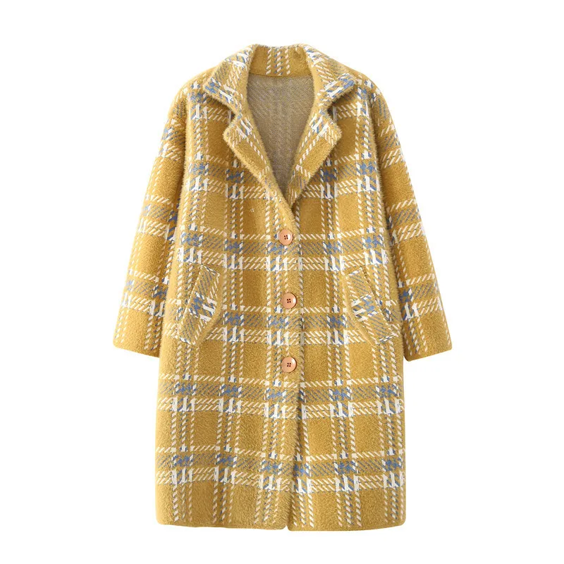 Пальто женское Шерстяное в клетку, средней длины, Осень-зима 2021