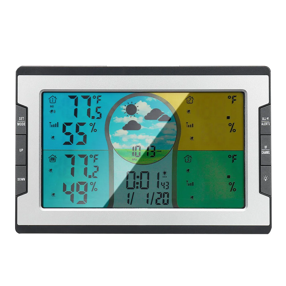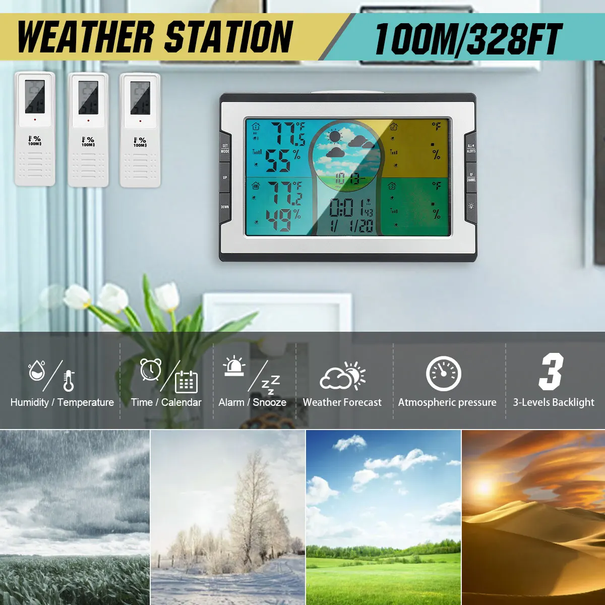 Профессиональная беспроводная метеостанция для помещений и улицы, Цвет станция прогноза погоды с экраном 3 датчик температуры с будильником