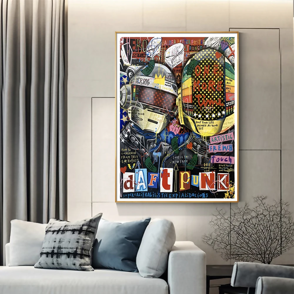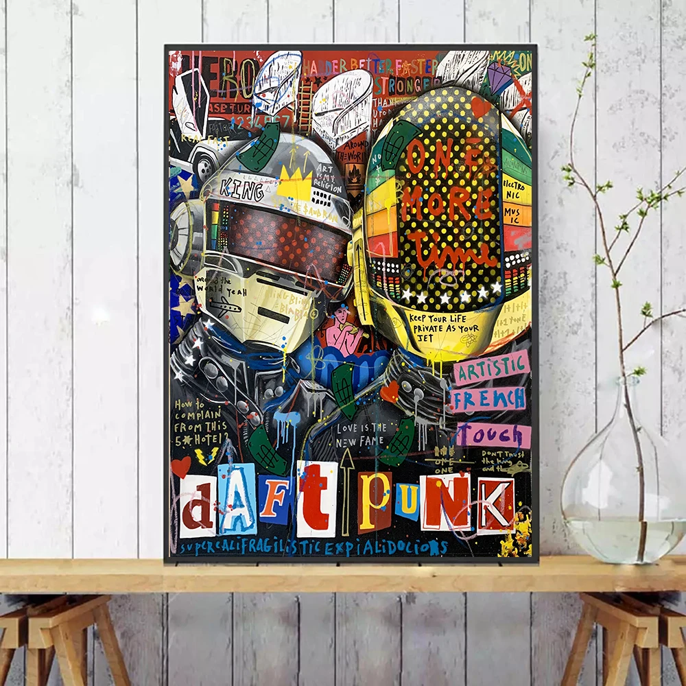 Поп-арт абстрактный современный граффити плакат Daft панк Картина на холсте Печать на стене картина для гостиной домашний декор