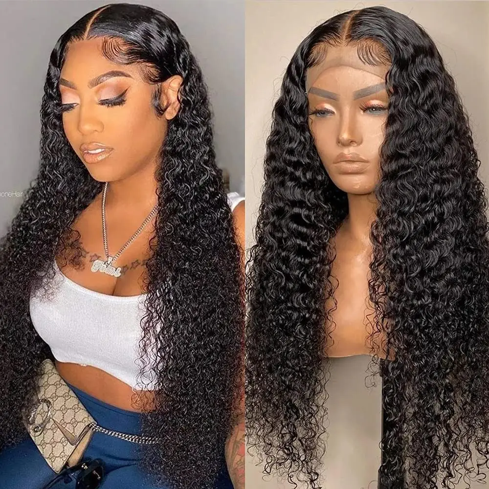 30 34 дюймов глубокая волна фронтальный парик кудрявые человеческие...