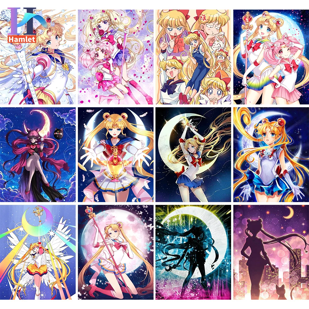 Картина по номерам масляная по номерам аниме Сейлор Мун, Акриловая картина по номерам, ручная роспись для взрослых, холст, искусство сделай сам, подарок для дома, искусство