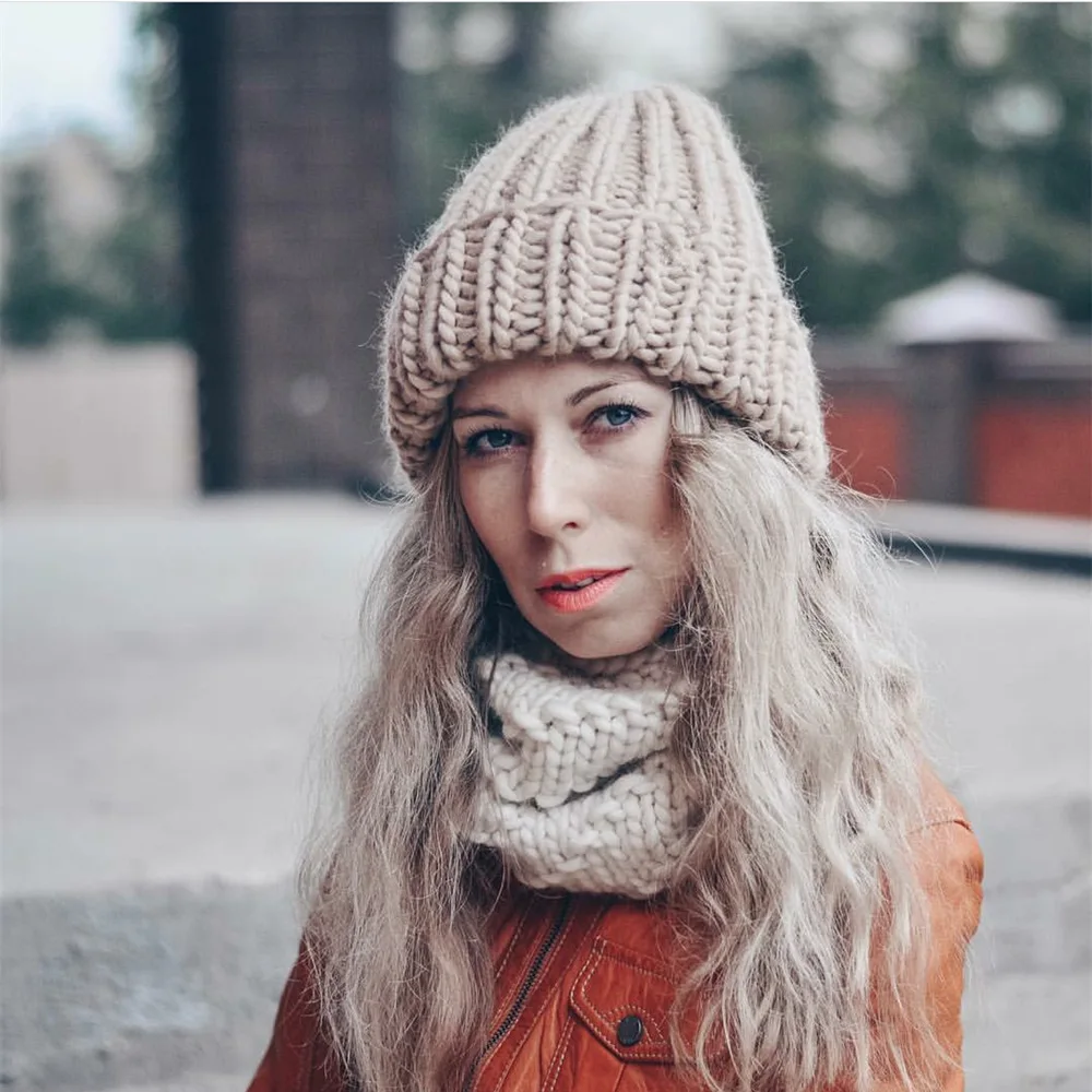 Женская зимняя вязаная шапка, плотная мягкая теплая крупная вязаная однотонная шапка, женская зимняя Лыжная шапка