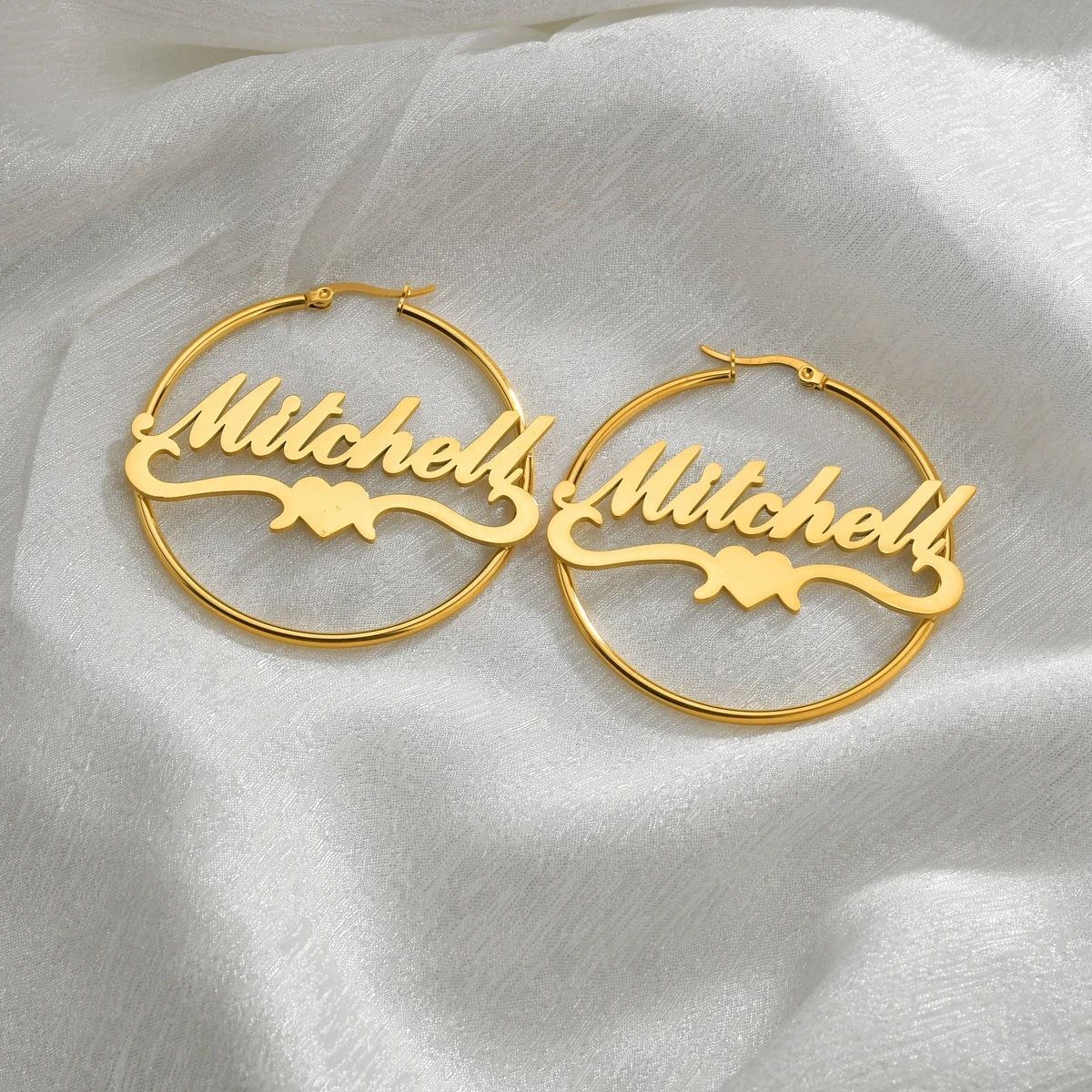 Ручной работы с именем из нержавеющей стали, серьги-кольца для женщ...
