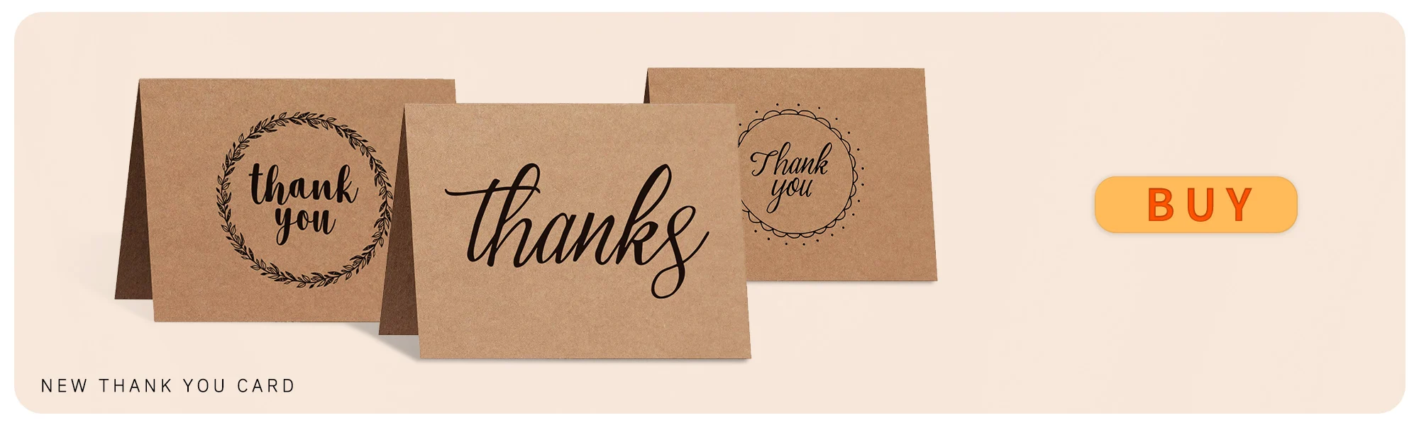 Карта из крафт-бумагиТекст: Спасибо за ваш заказТолщина: 250 грамм крафт-бумагиКоличество: 30 листов в упаковке