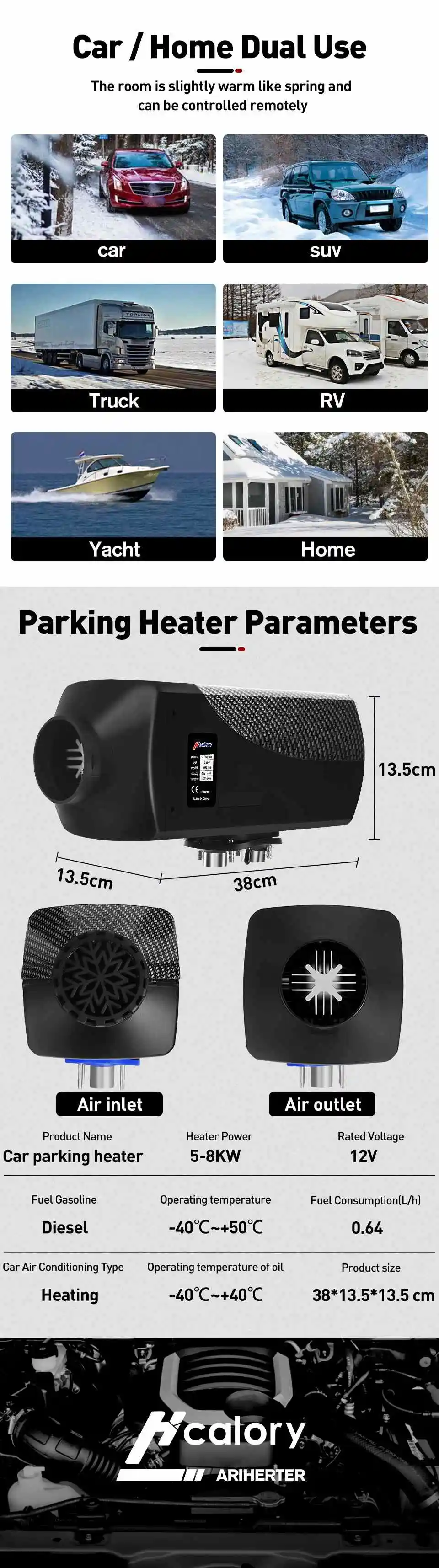 Особенности:-Кальцифицирующий жидкий кристалл-Нагрев может быть применен для нагрева кабины транспортных средств, фургонов, аккумуляторных батарей автомобилей и всех видов других транспортных средств.-Может удалить Мороз из окна.-Экологический продукт, низкий уровень выбросов, низкий расход топлива; Выхлопные выбросы нагревателей для удовлетворения требований выбросов двигателей евро IV.-Компактная конструкция, легко устанавливается.-Может разобрать на новый автомобиль при замене транспортного средства.-Технология летучей, с помощью керамического зажигательного гнезда нагрев топлива испаряется в газ, воспламенение, полное сгорание.-Использование передовой технологии автоматического управления, с ненормальными условиями работы надежным.-Топливо, электричество, температура может быть установлена произвольно.-Может Использовать Дизельное топливо.