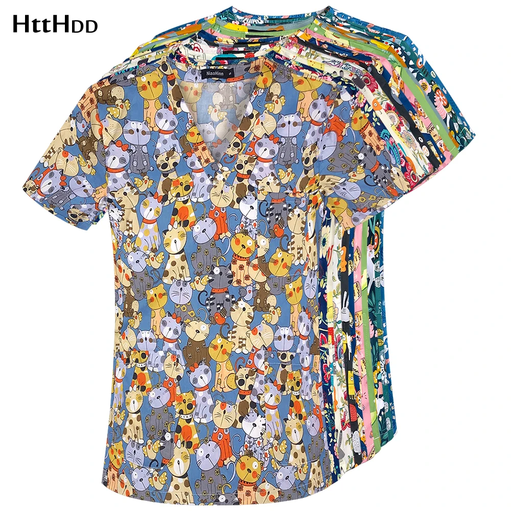 Хирургические Топы Униформа женская, с коротким рукавом, с принтом