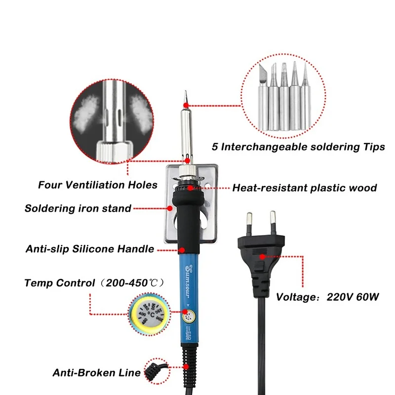 100% новый бренд.Профессиональный паяльный инструмент отлично подходит для бессвинцовых паяльных полупроводниковВысококачественный долговечный керамический нагреватель.Паяльники с регулируемым температурным контролем: 200-450 ° C (на электронном паяльнике есть ручка для регулировки температуры)Идеально подходит для хобби, комплектов, радиоприемников и электроники.Железные наконечники и конструкция из нержавеющей стали обеспечивают более длительный срок службы.