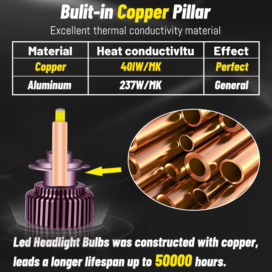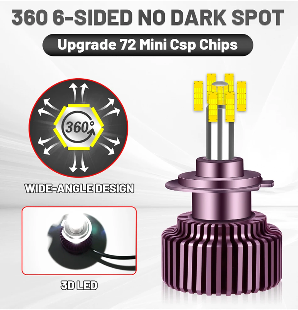 Светодиодные фары H7 6000K 25000LM 360 градусов CSP чипы 9012 HIR2 ...