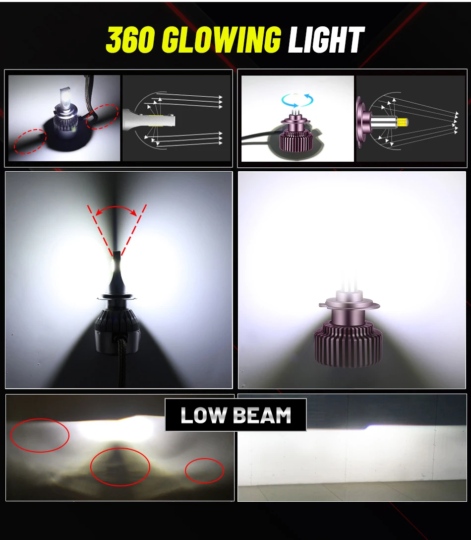 Светодиодные фары H7 6000 лм 100 K 360 Вт 9012 градусов ОСВЕЩЕНИЕ i...