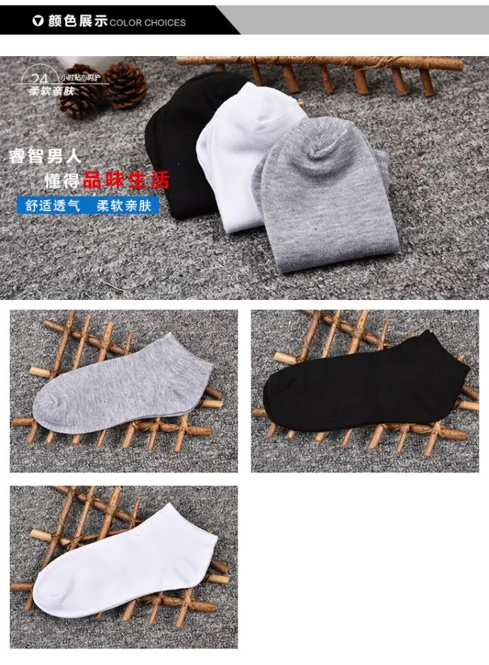 Носки мужские короткие 5 шт.компл., дышащие хлопковые низкие, невид...