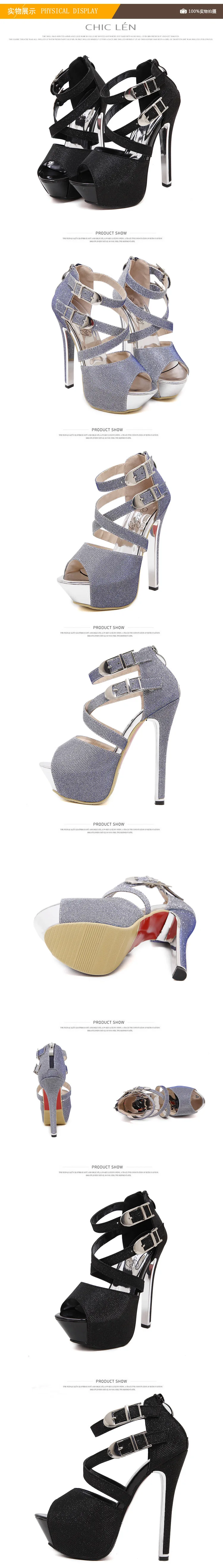 Серебристые Туфли на каблуке с открытым носком; Женские туфли-лодочки на платформе; Вечерние модельные туфли с ремешком на щиколотке; Женская обувь на каблуке 14 см