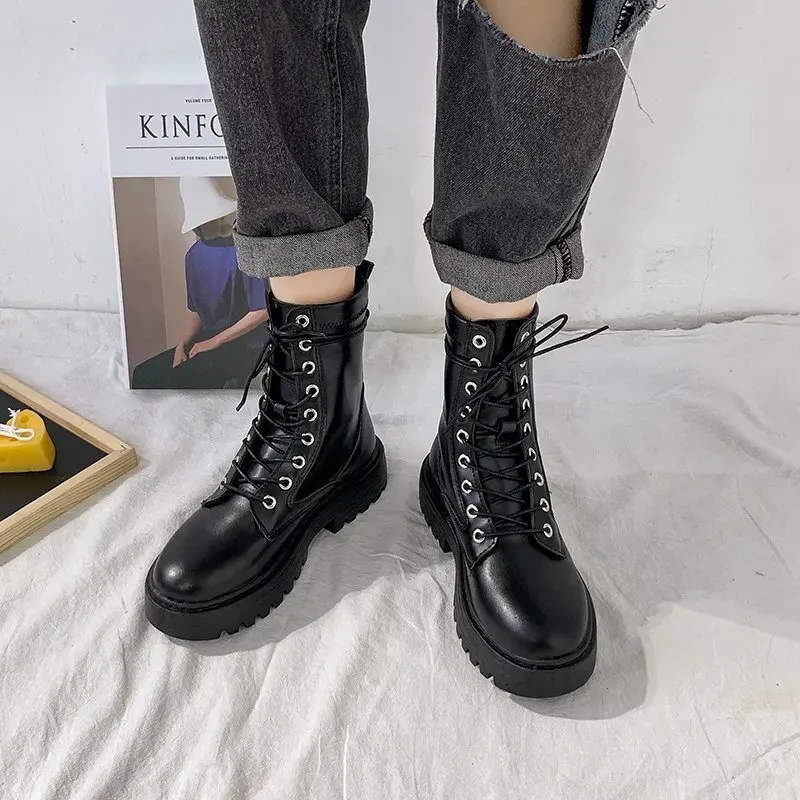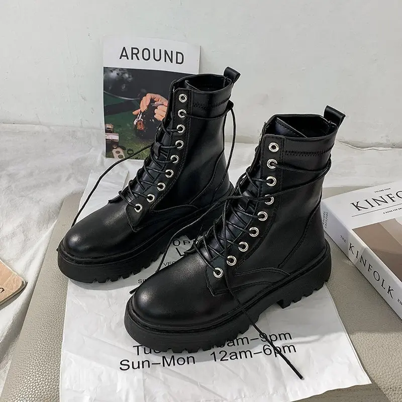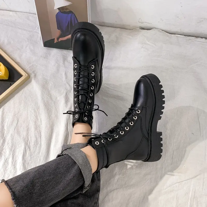 Ботинки женские кожаные в готическом стиле, на среднем каблуке
