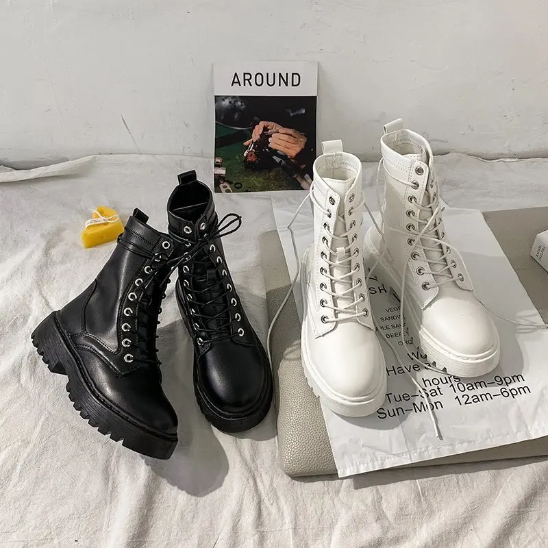 Ботинки женские кожаные в готическом стиле, на среднем каблуке, бел...